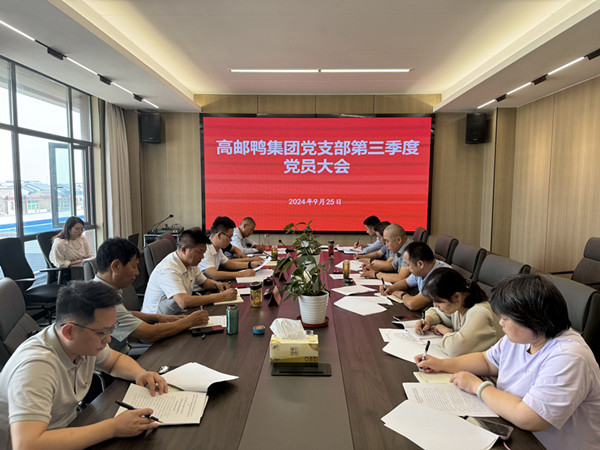 9月25日上午,高郵鴨集團(tuán)黨支部召開(kāi)第三季度黨員大會(huì),支部全體黨員參加會(huì)議,會(huì)議由梁勇書(shū)記主持。